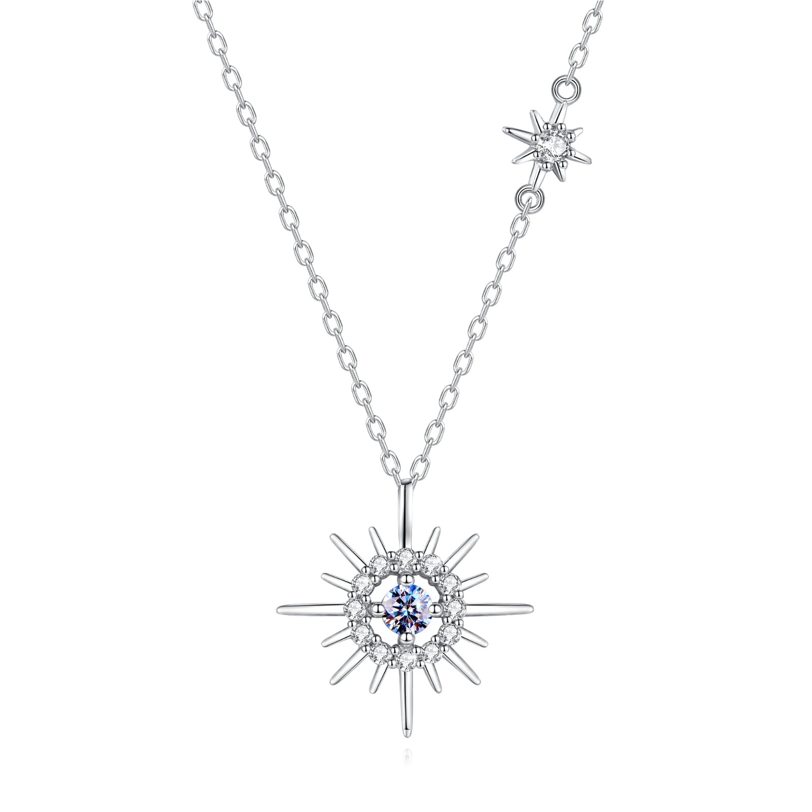 Handmade Sterling Silver Necklace Polaris Moissanite Pendant With Gift Wrapped Box For Her Woman Wife Girlfriend Daughter Present For Birthday Valentine Wedding Anniversary