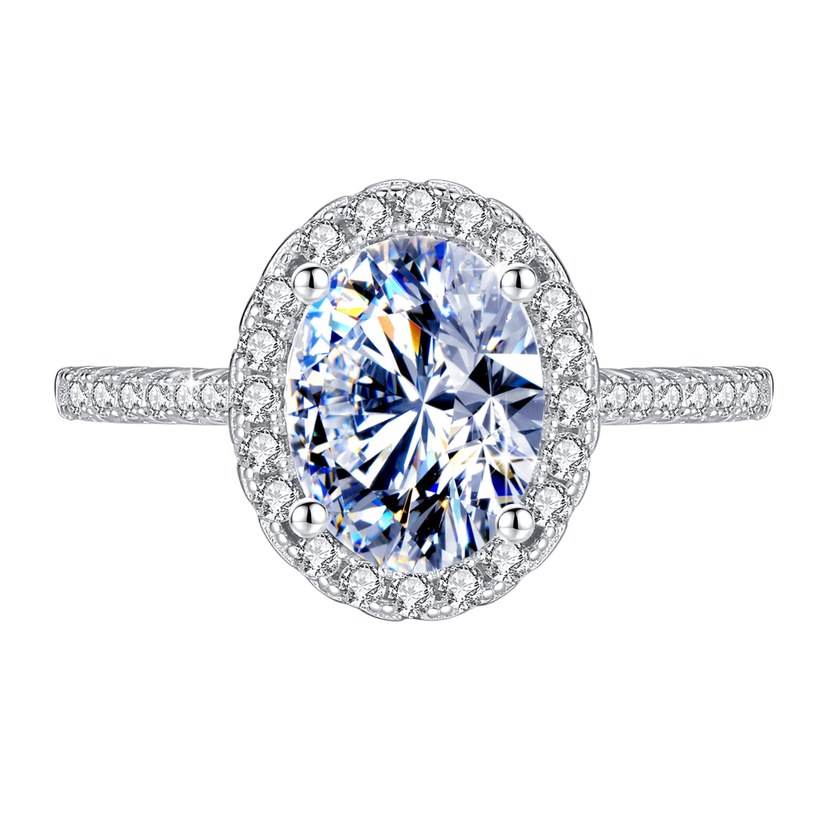 Handmade Sterling Silver Ring 2.0ct Oval Shape Moissanite Pavé Setting Proposal Solitaire With Gift Wrapped Box For Her Woman Wife Girlfriend Engagement Birthday Valentine Anniversary